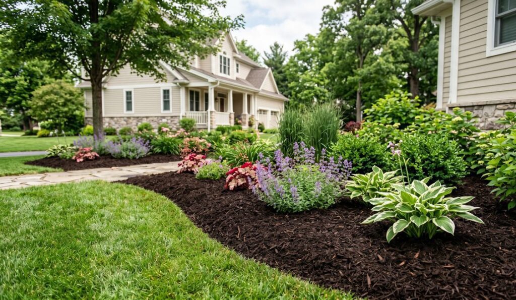 Our residential bed edging service gives homeowners an instant landscape upgrade. We edge around trees, beds, walkways, and driveways with consistent depth and clean lines, then remove all debris. Add our mulch installation service at the same time for a complete front-yard refresh — sharp edges, fresh dark mulch, and a landscape that looks professionally maintained. We work clean, protect your turf, and leave properties looking sharp from day one.